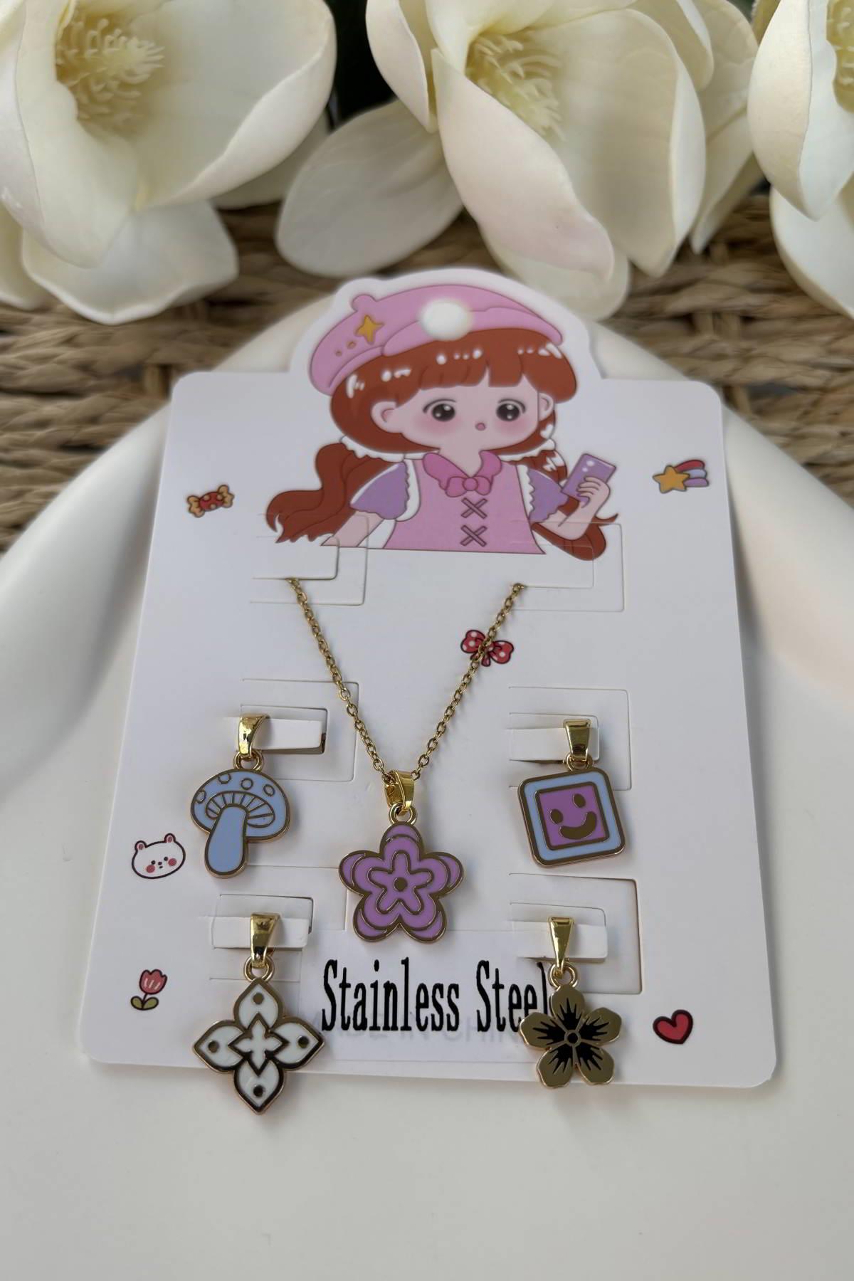 Çelik Çocuk Çoklu Uç Kolye (TKS218)