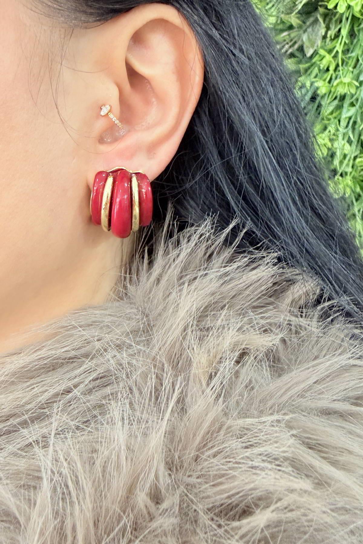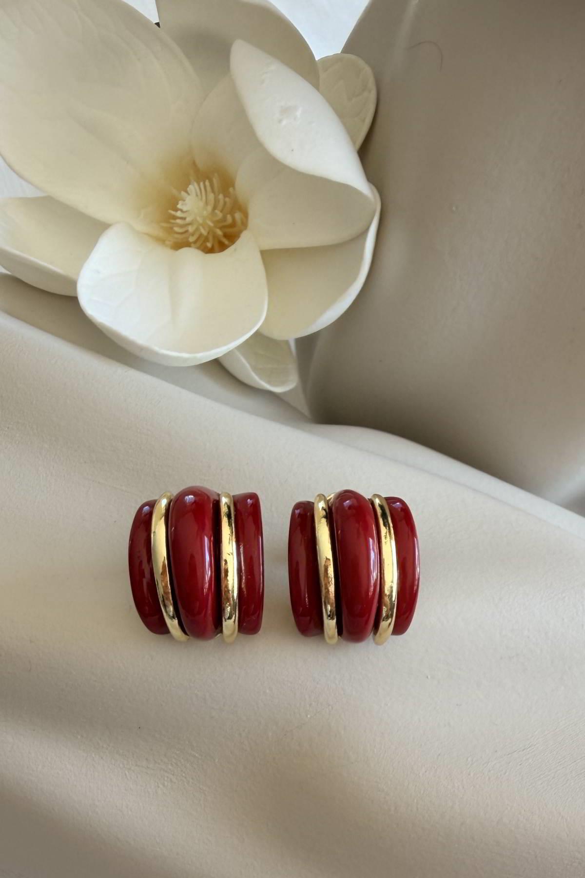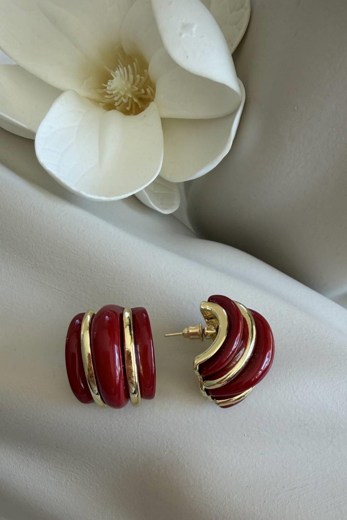 Çelik Koyu Kırmızı Marjinal Küpe (CLK246)