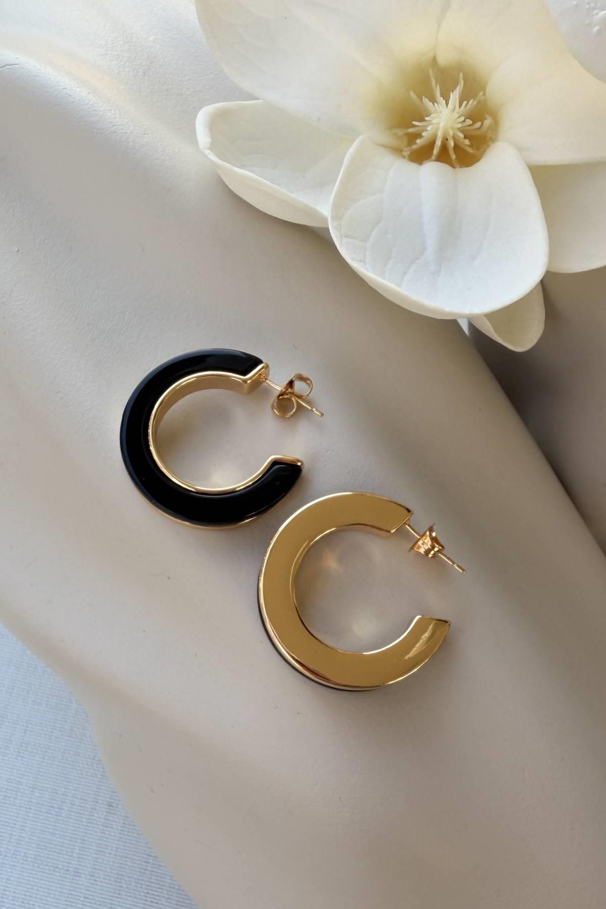 Çelik MNG Siyah Gold Çift Renk Küpe (CLK237)