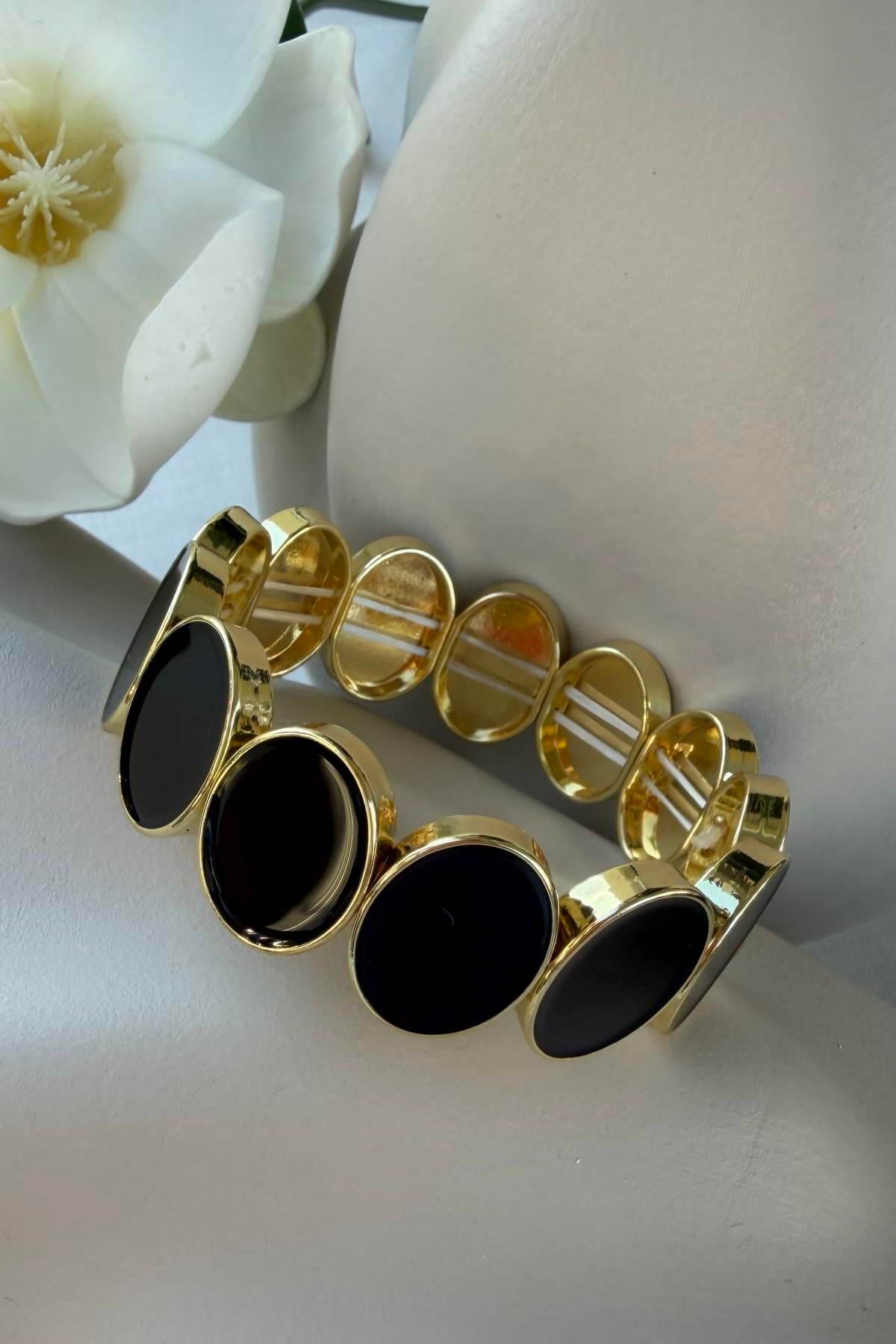 Çelik Oval Siyah Lastik Bileklik (BLKC553)