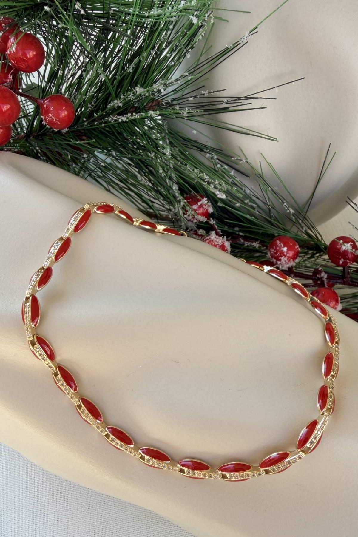 VİP 14K Kırmızı Işıltı Kolye (VİP218)