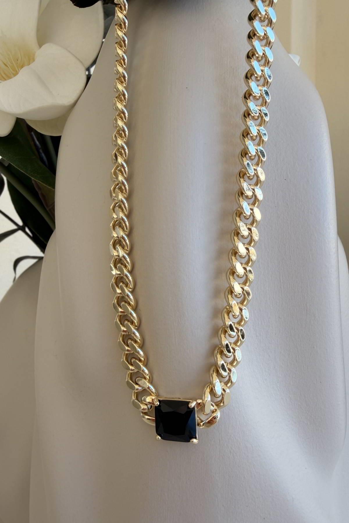 VİP 14K Siyah Tek Taş Kolye (VİP221)