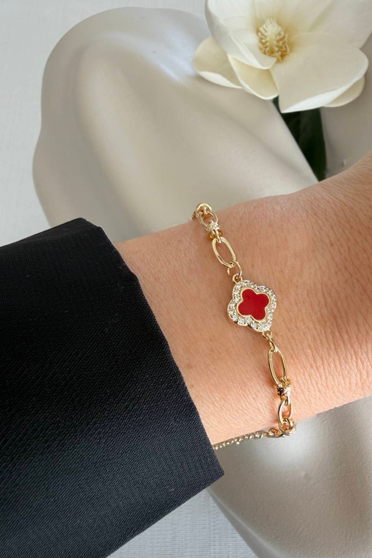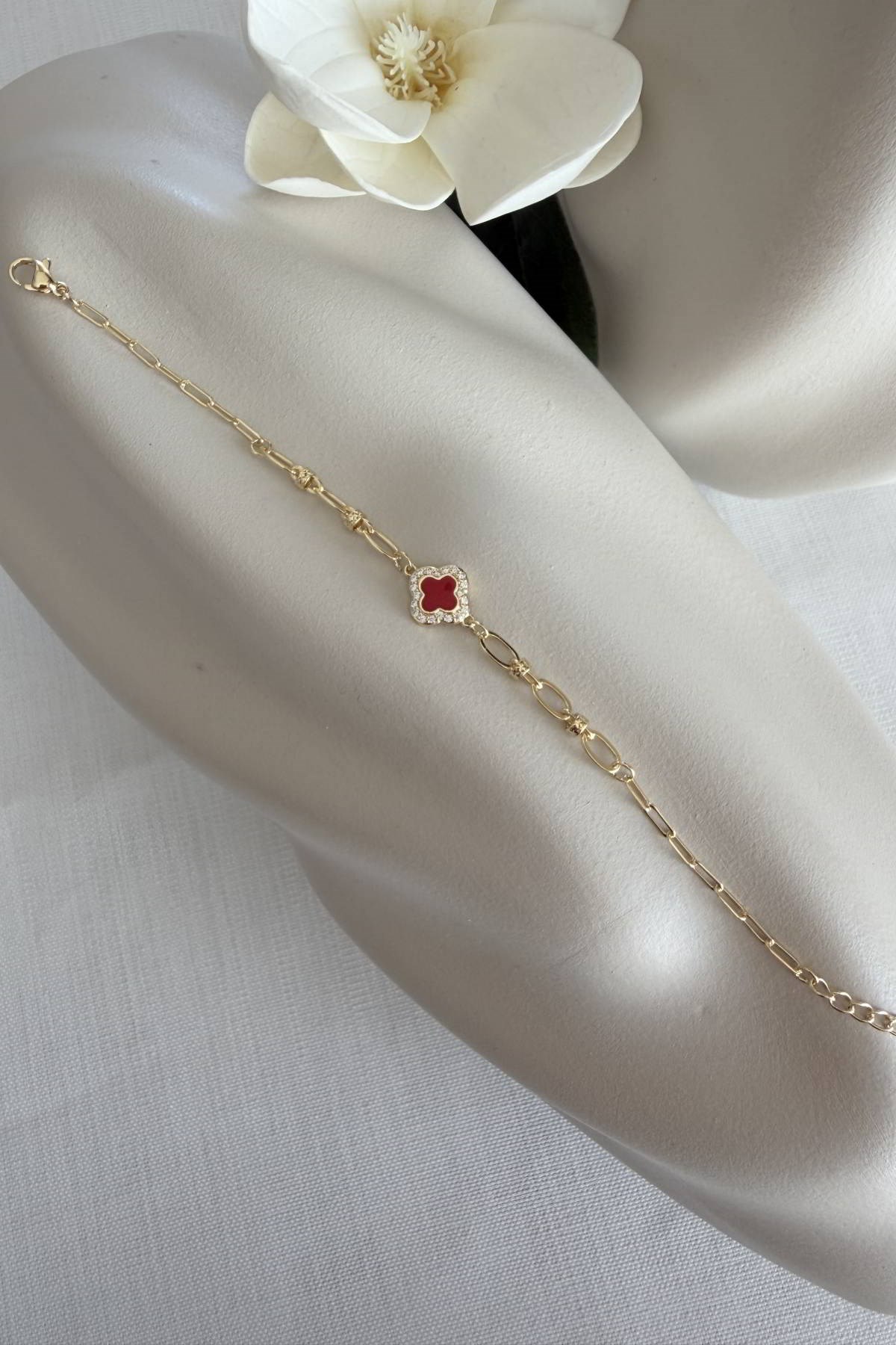 VİP Zarif Kırmızı Yonca Bileklik (VİPCM303)