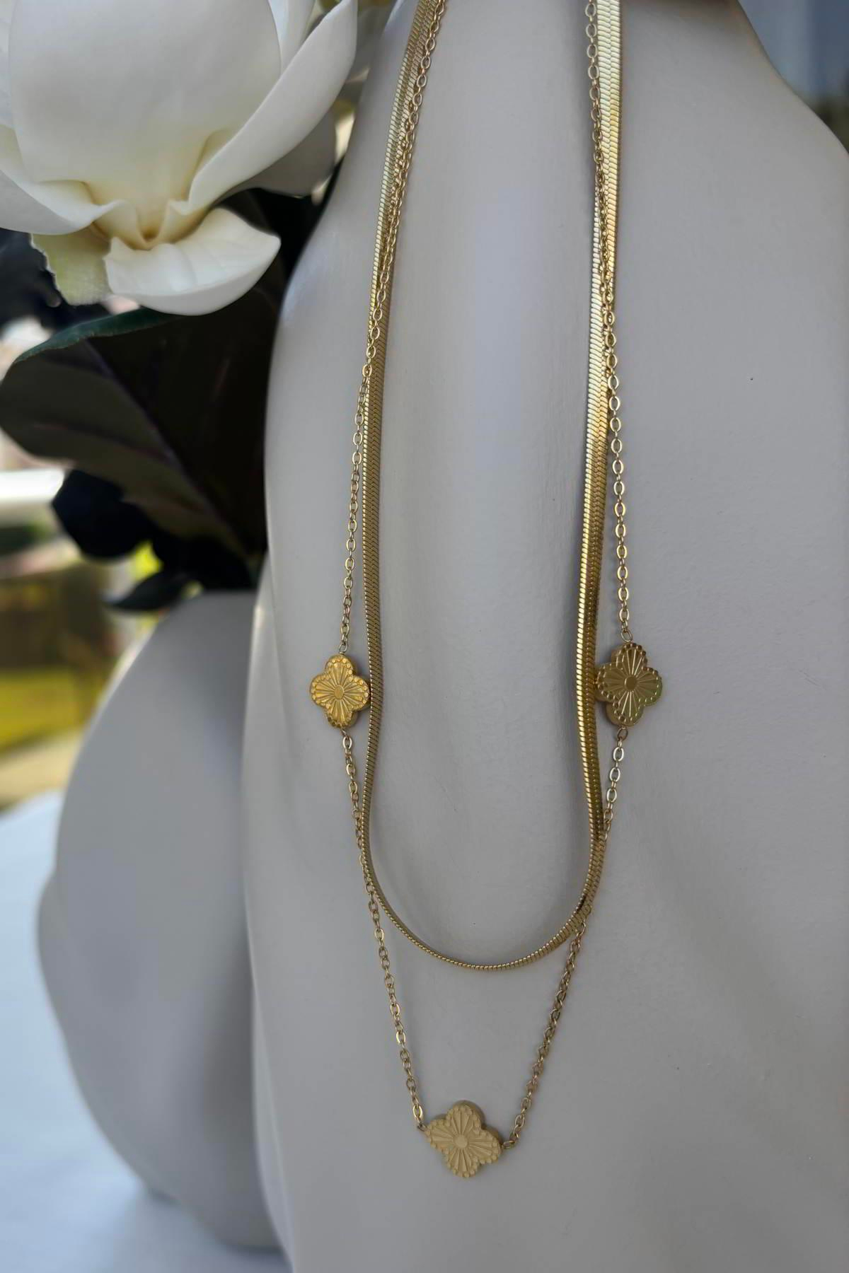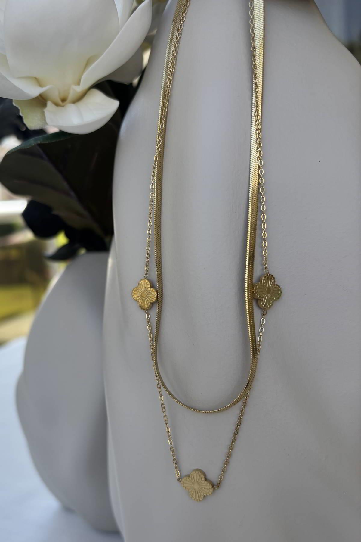 Çelik 316L 14K Çift Zincir Yonca Kolye (KLYC575)