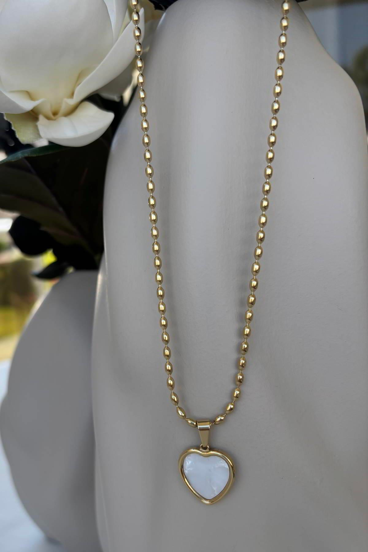 Çelik 316L 14K Sedef Taşlı Kalp Kolye (KLYC577)