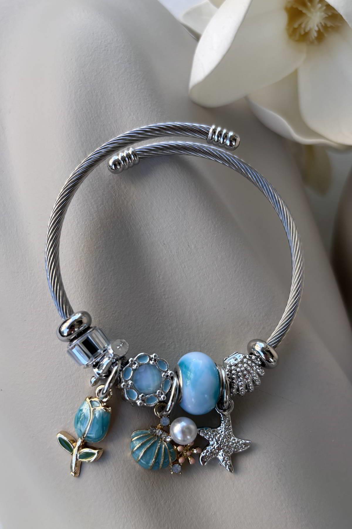 Çelik Gümüş Charm Bileklik (BLKP344)