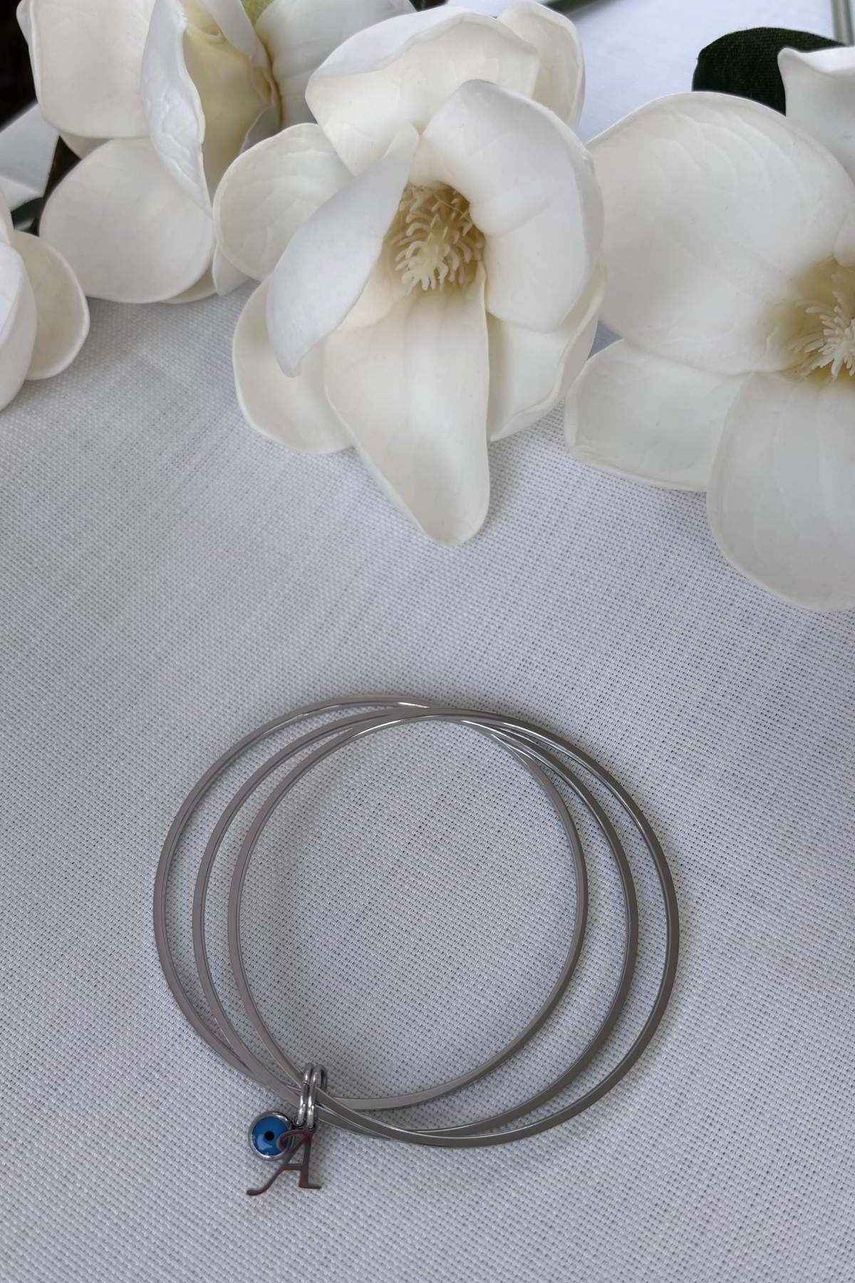 Çelik Gümüş Nazar Boncuklu A harfi Bilezik (BLKC290)