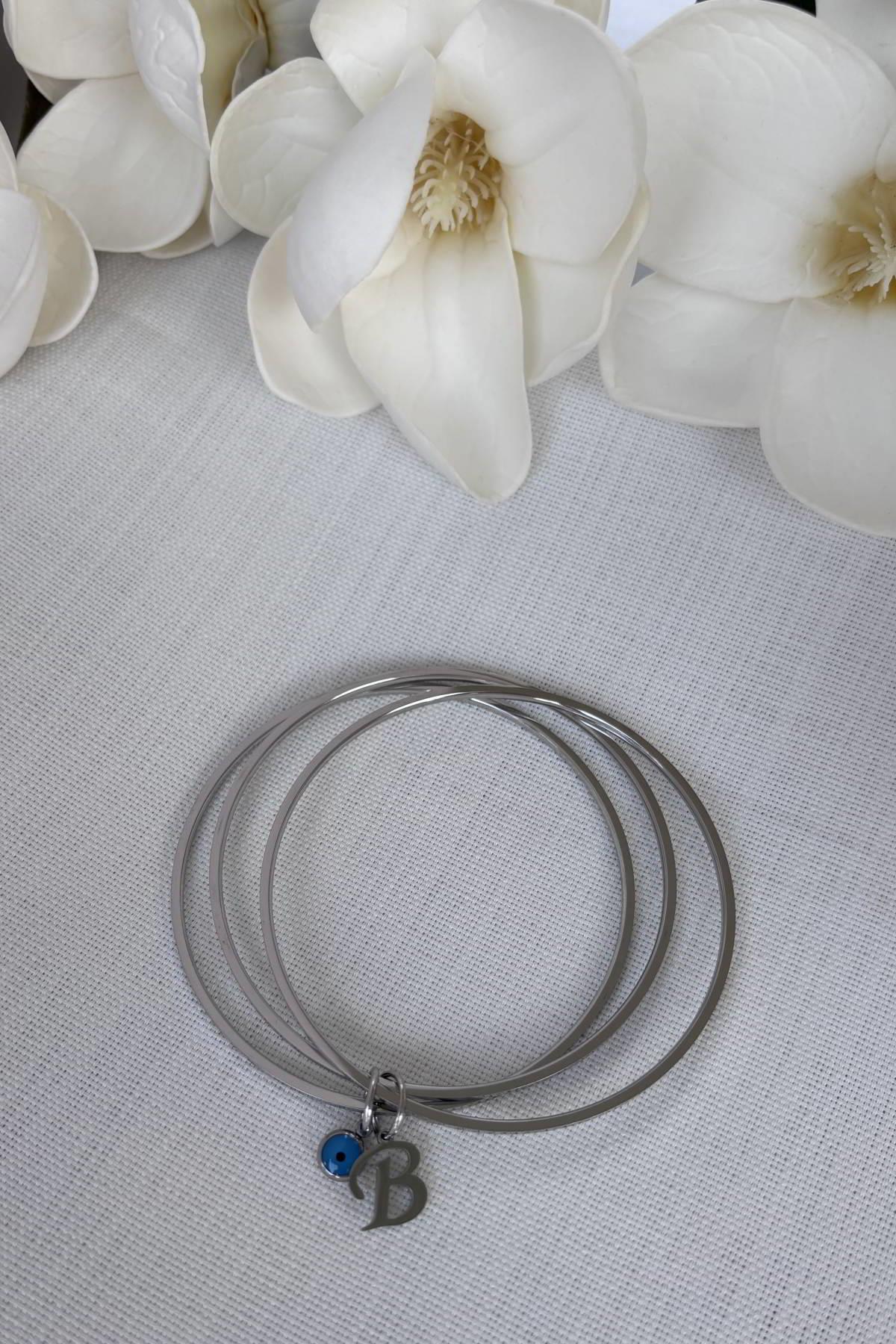 Çelik Gümüş Nazar Boncuklu B harfi Bilezik (BLKC291)