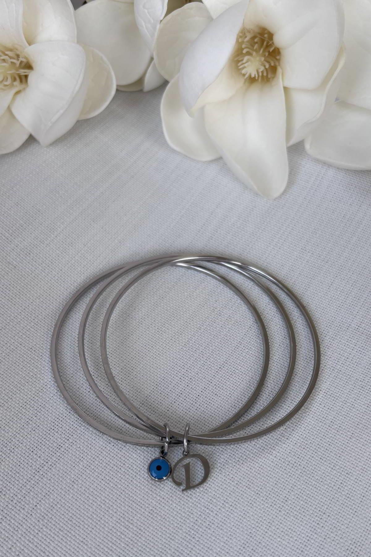 Çelik Gümüş Nazar Boncuklu D harfi Bilezik (BLKC293)