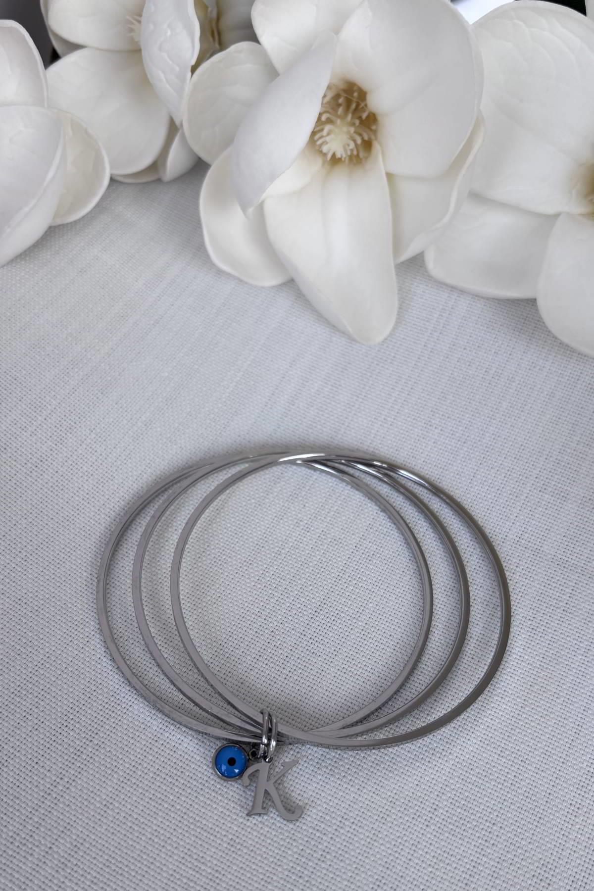 Çelik Gümüş Nazar Boncuklu K harfi Bilezik (BLKC298)