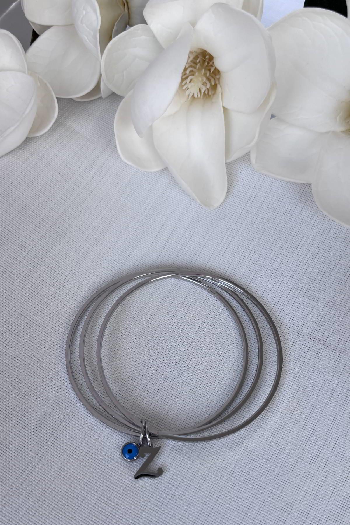 Çelik Gümüş Nazar Boncuklu Z harfi Bilezik (BLKC304)